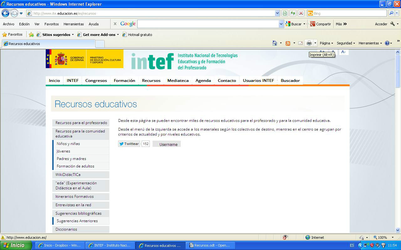 Página del ministerio de Educación donde se encuentran numerosos recursos para primaria y secundaria dirigidos al profesorado